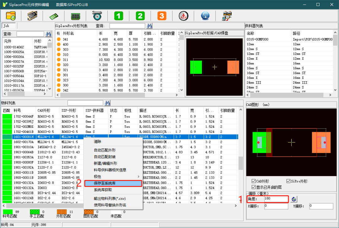 操作方法如下圖,在元件資料編輯界面設(shè)置好元件角度補(bǔ)償值,存入系統(tǒng)庫(kù)。