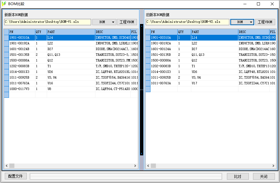 1.2:將兩份BOM數據導入,進行版本對比