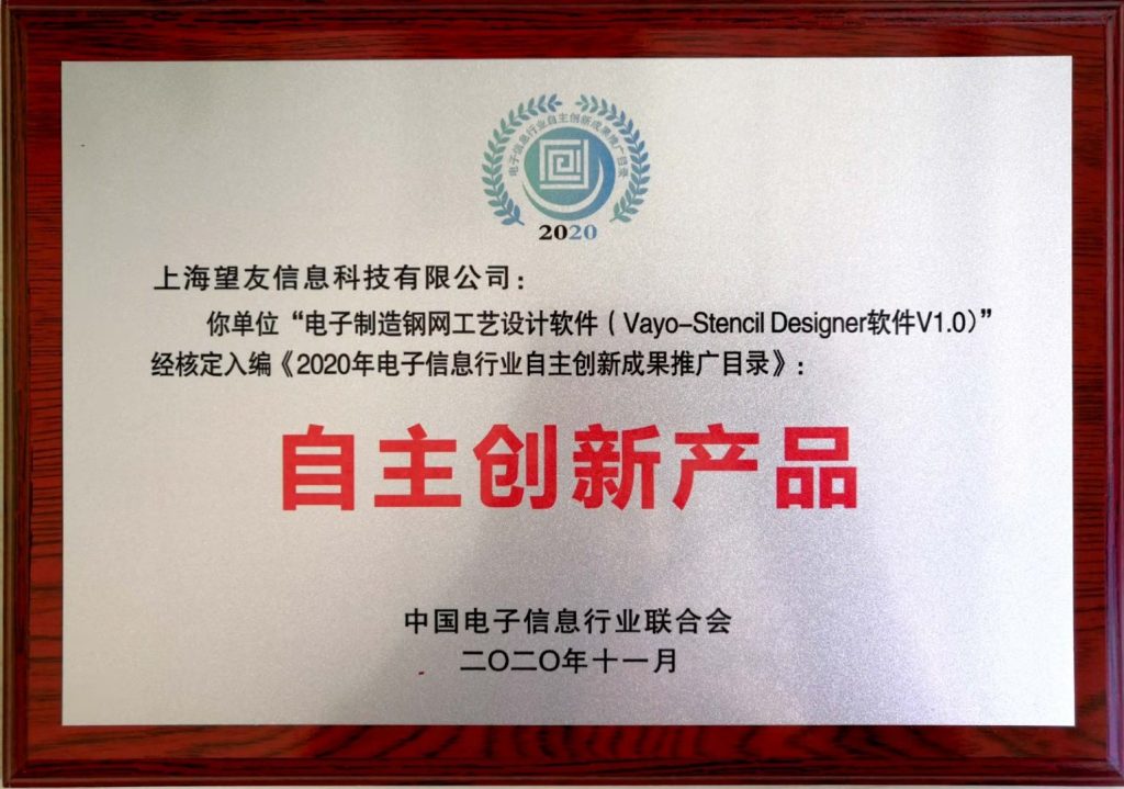 11月12日,中國電子信息行業聯合會在2020(第二十四屆)軟博會上發布了《2020年電子信息行業自主創新成果推廣目錄》,其中望友科技三款軟件產品入編推薦目錄創新產品類別,分別是DFM Expert、Stencil Designer、SMT Expert。
